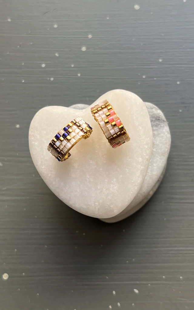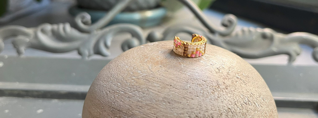 Bague d'oreille réglable : anneau ouvert sur lequel est monté un tissage de perles en verre Miyuki Delica.