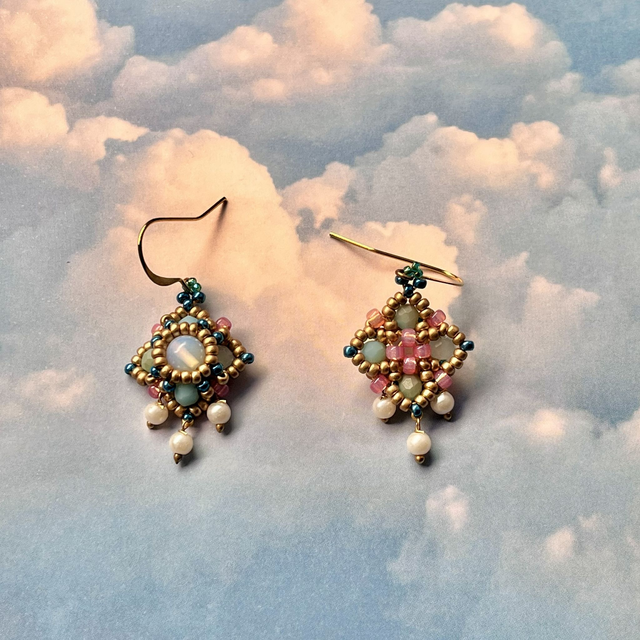 Boucles d'oreilles en perles carrées bleu ciel rose et opaline
