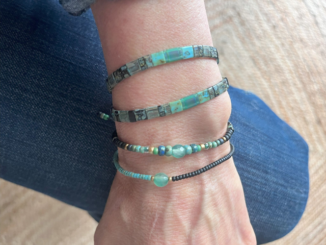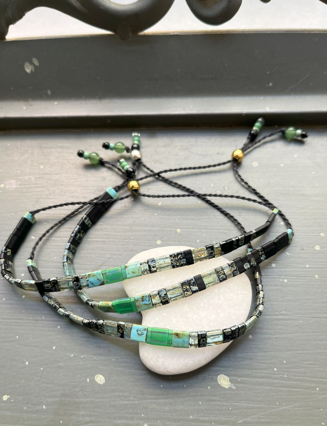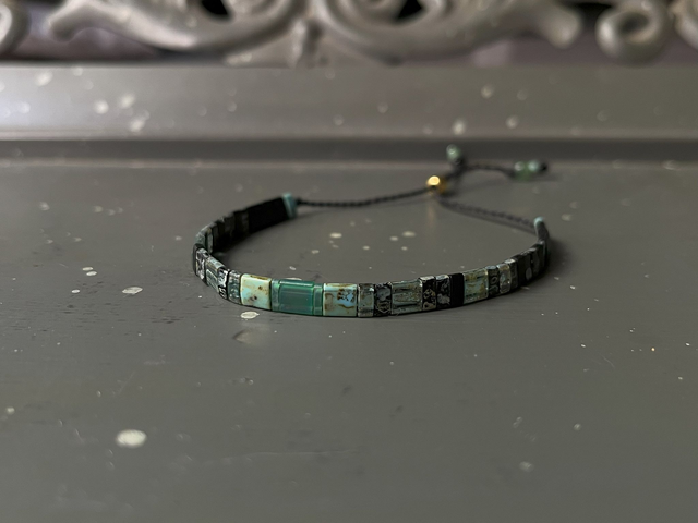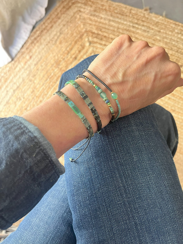 Bracelet macramé en perles carrées Tila vert et noir.